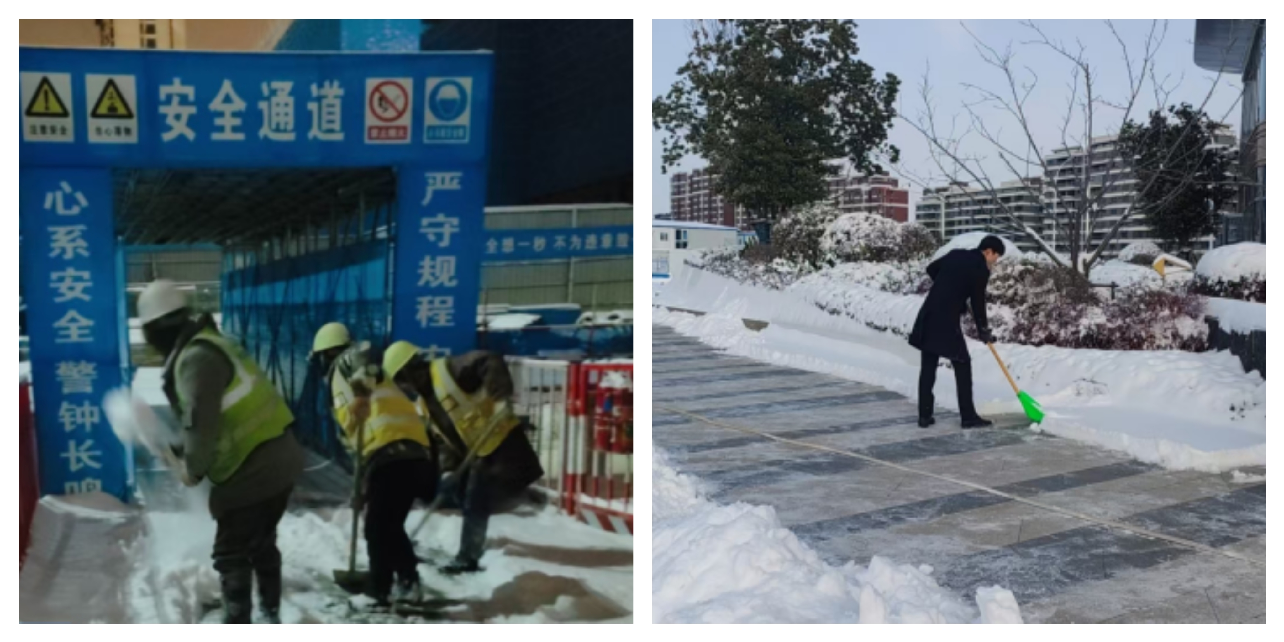 1月19晚降雪逐漸增大,各項目、鄰里匯商業(yè)、售樓部、會展中心分別組織專人在主干道、通道出入口清理積雪,潑灑工業(yè)鹽、融雪劑,對設(shè)備設(shè)施進行檢查,并設(shè)置24小時值班電話,應(yīng)對突發(fā)情況。